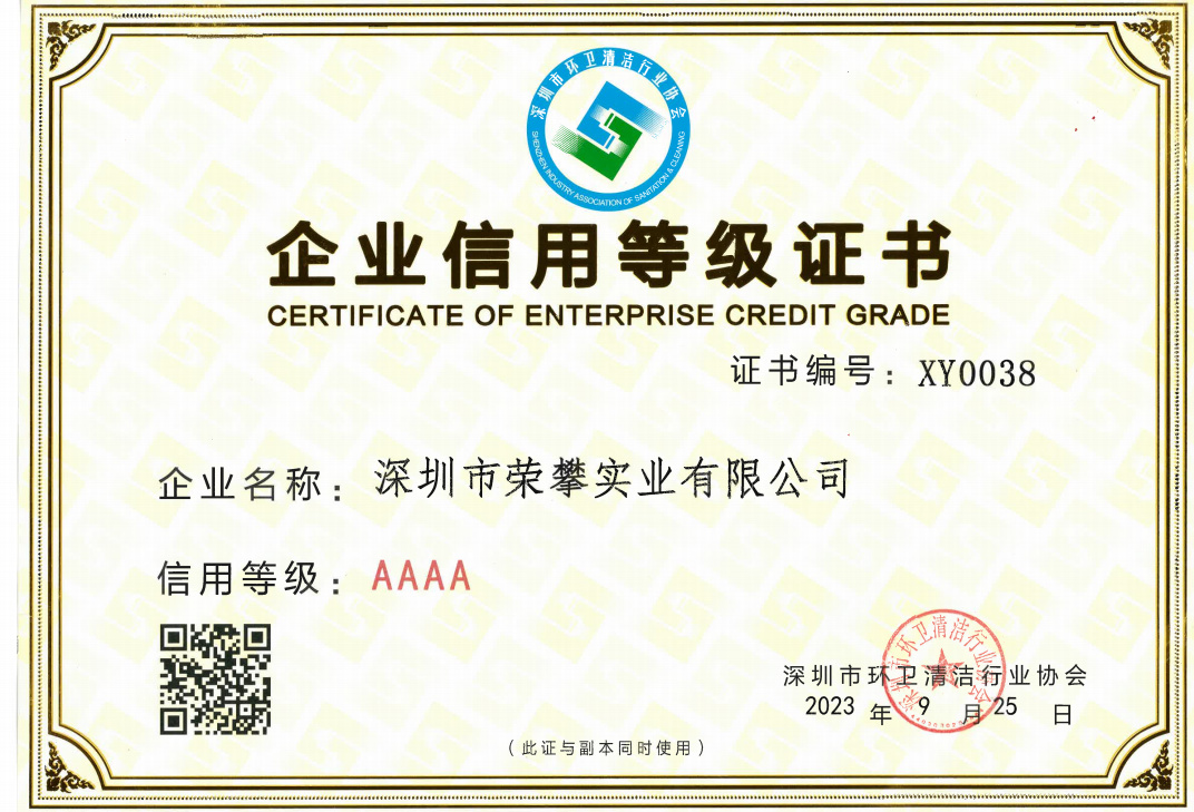 清洁服务资质证书