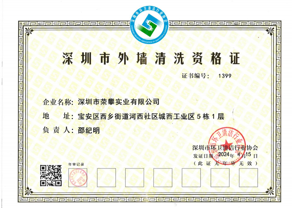 高空外墙清洗服务企业资质证书